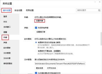 2.在打开的“系统设置”对话框中,选择“基本设置”下方列表中的“热键”选项,在右侧单击“设置热键”按钮。