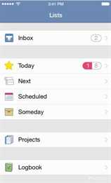 Things 设计十分简洁,主要分为今天要做的事、接下来要做的事、定时要做的事以及以后要做的事,项目管理中可以对每一个项目划分多个子任务。