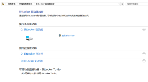 2.打开后的界面如下图所示,我们选择要加密的优盘或移动硬盘,然后点击启用BitLocker。