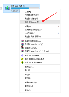 1. 在要加密的优盘或移动硬盘上点右键,选择启用BitLocker
