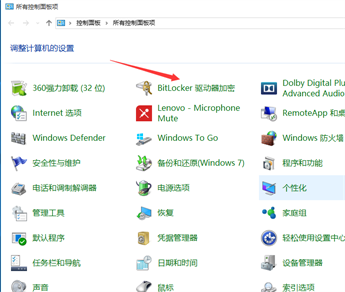 1. 打开控制面板,选择BitLocker驱动器加密图标。如图所标。