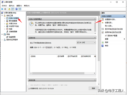 2、单击“系统工具”栏下的“任务计划程序”,最后在最右侧的“操作”栏中,点击“创建基本任务”,开始一个新的任务。