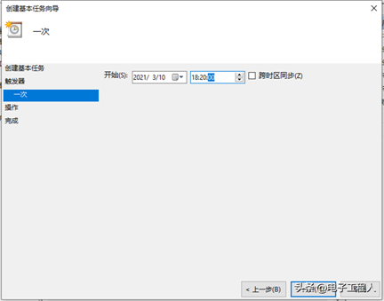 5、设置时间可以根据需要设置,这里设置了下午6点下班时间,我们修改第二个框中的内容为18:20:00即可,数值可以点选也可以输入。我们还可以在第三个框中更改时间间隔。设置完成后点击“下一步”。