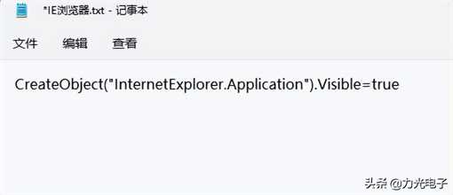 2、在文本文档中输入:CreateObject(“InternetExplorer.Application”).Visible=true。