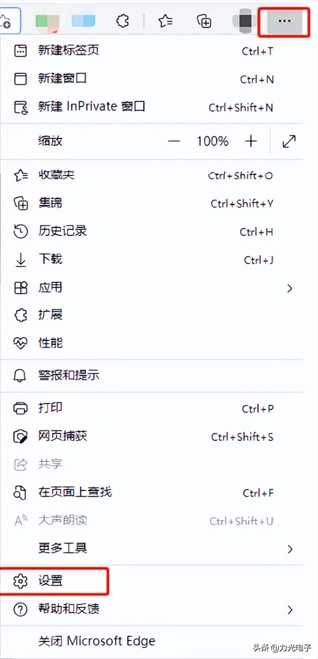 4、打开Edge浏览器点击右上角的【设置及其他】,点击【设置】。