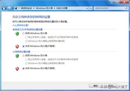 选择“关闭windows防火墙”点“确定”就可以了。有的时候打印机不能连接,关闭防火墙就可以了。