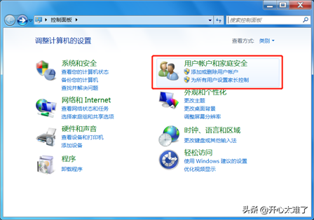 在需要添加共享打印机的电脑上,我们先打开“控制面板”,然后再打开“用户账户”。