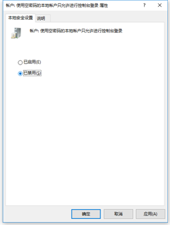 继续往下找到“账户:使用空密码的本地账户只允许进行控制台登陆”