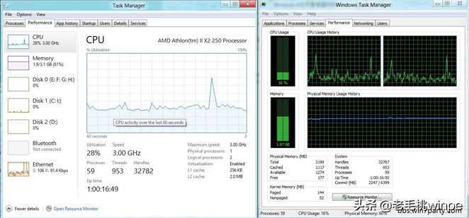 那为什么内存占用会变大了呢?接着上面的解说,这个压缩存储属于系统进程中的一员。举个例说,有两个班,每个班30人,如果一个班的十人调去了另一个班,那么这个班就有40人了,课室的空间比之前变得狭窄许多。同理,压缩存储工作在系统进程工作集,如果将一部分内存挪用到其他进程,工作集就会变得更大,因此我们就会看到内存被占用很多。