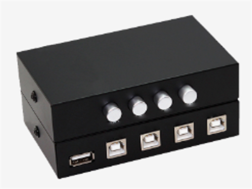 打印机切换器是一个物理手动切换打印机的小盒子。打印机和电脑同时都连接到切换器上,通过打印机切换器上面的开关按键选择哪个电脑使用打印机。