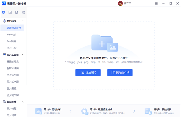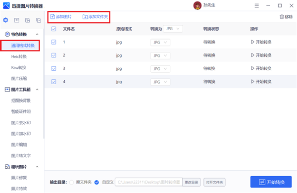 这款神器名叫《迅捷图片转换器》,可百度搜索下载安装,这是一款专业的图片格式转换工具,除了可以转换图片格式外,还有附带有一些图片处理的功能,比如图片压缩、抠图换背景、照片修复等。