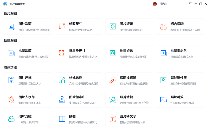 既然是图片处理神器,当然是不止这几个功能,里面还有照片修复、照片特效、拼图、滤镜等多个实用功能。