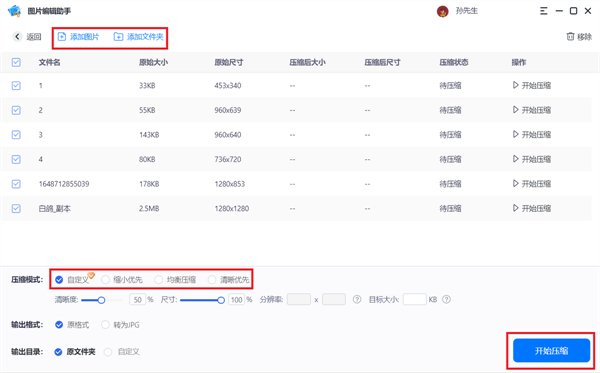 如果图片的内存太大,是无法上传到有限制大小的平台,将图片添加到图片压缩功能,支持jpg、png、gif等格式,选择你需要的压缩模式就可以压缩了,也能把整个文件夹添加进去进行批量压缩。