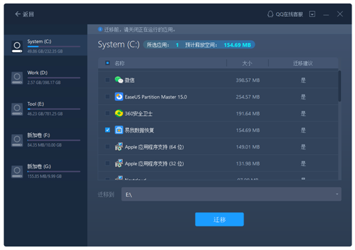 下面小编带大家看一下使用易我电脑迁移是如何实现应用搬家的: