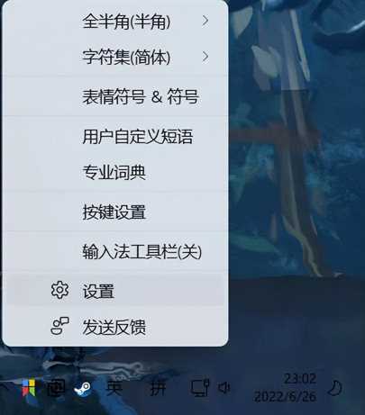 WIN11直接在右下角输入法那里右键点击,选择设置就可以直接进入输入法设置界面,如图所示。
