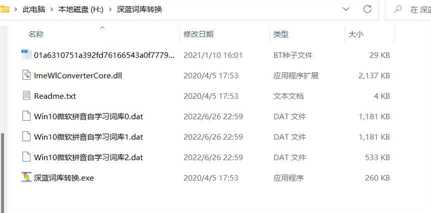 另外说一句,如果要转换多个词库,转换了第一个词库转换,赶紧将dat词库改名复制剪贴到其他文件夹里面,因为每次转换它都会自动覆盖上一次的文件,永远都是win10微软拼音自学习词库0。