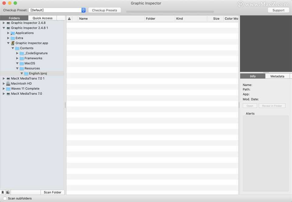 使用Graphic Inspector,您可以在几秒钟内检查一批图形是否存在问题。无论您是摄影师,图形设计师还是只需要使用大型图形库的人,您都可能需要快速搜索特定属性或错误。您可以改为使用Graphic Inspector,而不是按文件执行此文件,这可能非常繁琐。应用程序快速检查文件并显示所有详细信息,例如颜色模式,分辨率或专色。您甚至可以在侧窗中查看由相机记录的EXIF数据。Graphic Inspector可以检查预设并快速查找共享相似属性的图形。它会标记所有相关文件,以便您以后查看。在更正应用程序检测到的图形后,您可以快速重新扫描它们并确保更改已得到很好的实施。只需通过Graphic Inspector查看信息即可。