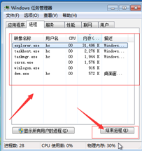 2、打开电脑任务管理器后,就能直接关闭这里面的任务进程了,点击任务后再点击右下角的结束进程。