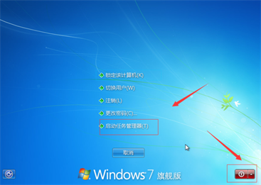 4、通过这组快捷键我们就能打开下图界面,在这里也可以启动任务管理器,也可以点击右下角直接关机。