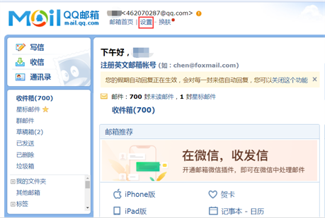 1 登陆QQ邮箱后,点击邮箱界面上方的“设置”按钮。