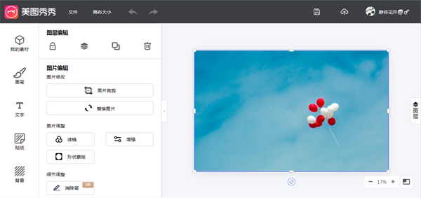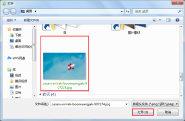 3.在弹出的“打开”窗口中,按照原始图片的保存路径找到要裁剪的图片,单击选中,再单击窗口右下角的“打开”按钮。此时,图片就会被拖入美图秀秀网页版的图片操作区域。