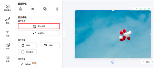4.选中原始图片,在左侧的菜单中选择“图片编辑”下的“图片裁剪”选项。