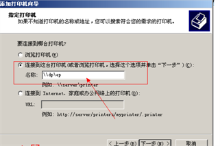 在这项的下面文本框里,需要说明的就是:\dpep \不能写错dp是共享打印机的计算机名 ep就是共享打印机名.
