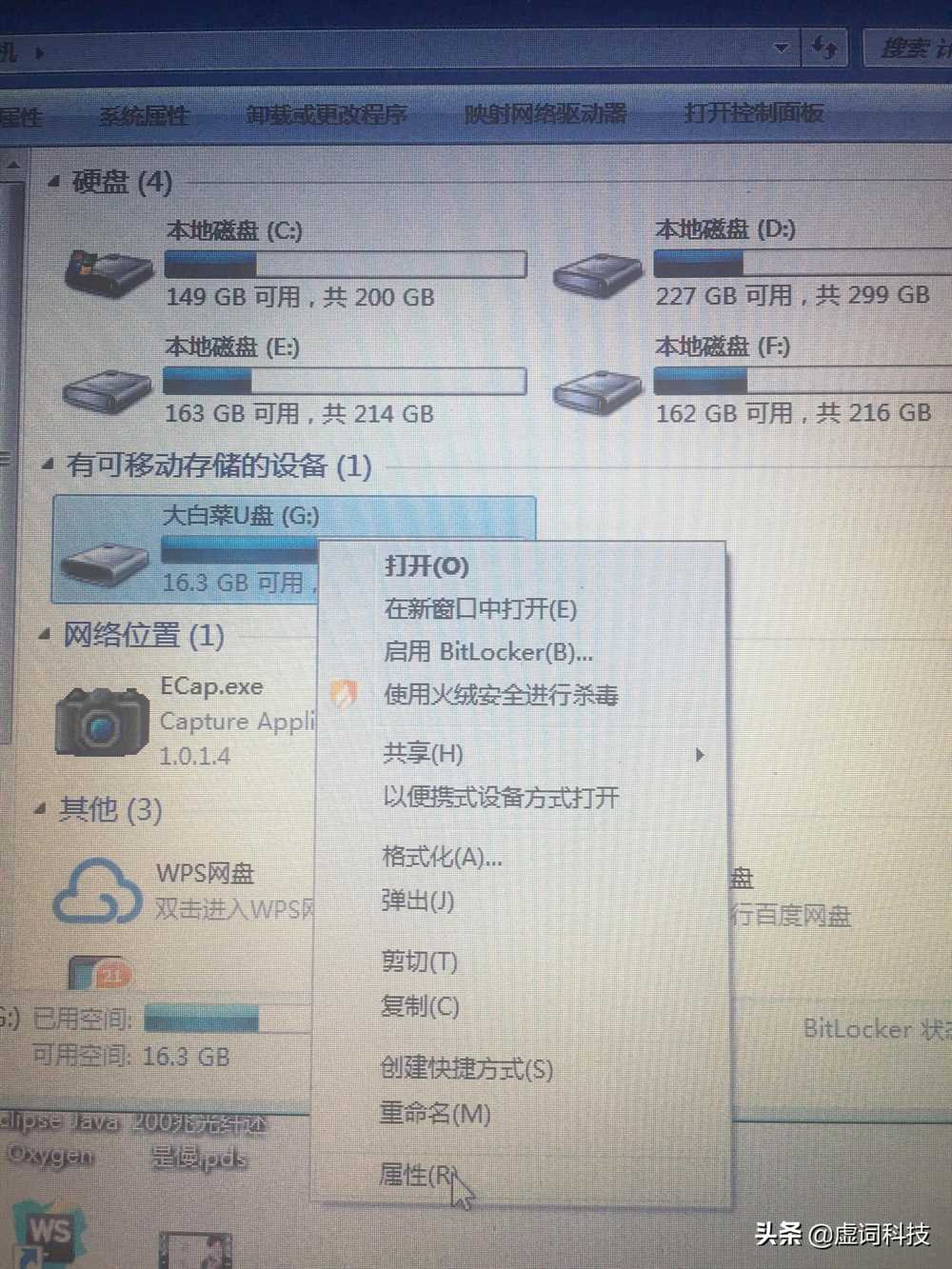 步骤三:选择自己的U盘后点击属性