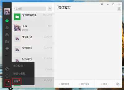 操作方法:登电脑版微信后,点微信右下角的三条横杠,选择【设置】;