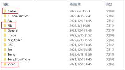 这三个文件夹分别是【Cache】、【File】和【Video】。