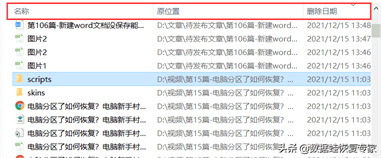 针对第一种情况,你可以打开桌面上的回收站图标。在回收站程序中,你可以按照时间对文件进行检索,可以很容易地找到删除的文件,右键点击文件,就可以进行文件的恢复了。接着打开删除文件所在的路径,就可以看到复原的文件了。