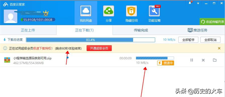 对于100M以下的文件,可以考虑采用临时加速60秒的方法来实现,这种方法手机和电脑端都可以使用,一天一次,速度达到SVIP的速度。该方法只适合小文件的下载。据说,当60S试用没有到期的时候,你退出百度网盘,重新进入的话,你还可以再试用60S哦。因为我的账户是会员,无法试验,大家可以自测下。