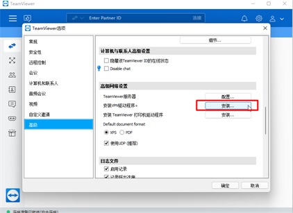 首先需要双方都下载TeamView软件,打开软件选项高级里面先安装VPN驱动程序,两台电脑主机都需要安装Teamviewer VPN 的功能