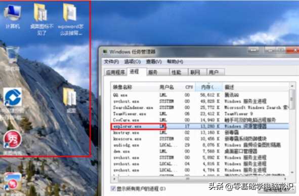 5,就可以看到进程已经在任务管理器中正常运行了,桌面图标也恢复正常了
