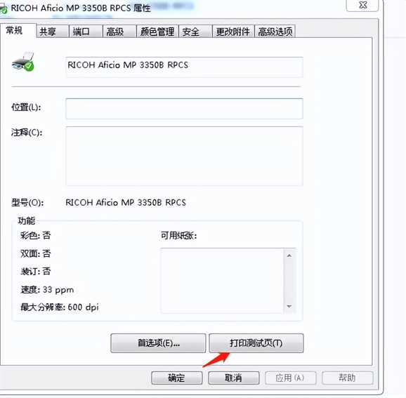 驱动安装好,我们可以在“设备和打印机”上面看到已安装好的打印机。点击“属性”可以进行“打印测试页”,这时打印机能打印出来纸,就证明你打印机已经安装好了。