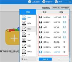 选择右上角的“输出格式”,上面有多种视频格式格式,以及视频参数可供选择。