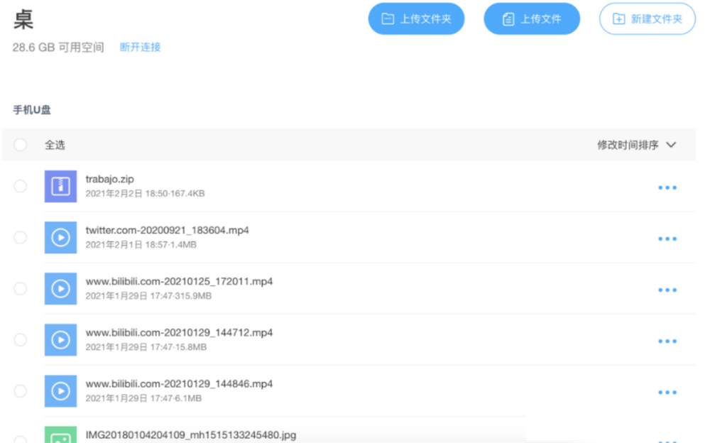 b. 此时可以在桌面端可以看到刚刚上传到手机U盘里的文件,直接下载到电脑里就好了