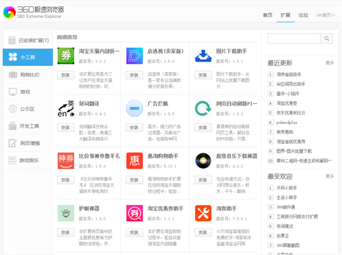 很多浏览器都可以安装插件,比如上面这些,还有许多使用Chrome内核的浏览器都是支持的。通常,可以装插件的浏览器都有自己扩展程序商店(如下图),这里安利一下Chrome扩展商店,插件又好又多