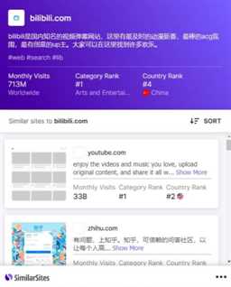 当你访问一个网站时觉得它很有趣,你会不会想要发现更多相似题材或功能的网站,有这个插件就能实现啦。比如在B站页面使用这个插件会得到如下结果。