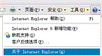 然后就弹出关于IE的选项, Internet Explorer图标后面写的数字就是IE的版本,在第一行小字版本中是详细的ie版本(如下图二为IE8)。