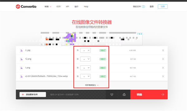 这个网站也是一个在线转换文件的网站,它的功能涉及文件的类型更多些,图片、音视频都可以进行转换,网站也比较方便,在上方转换中选择图像转换器就可以对图片进行转换了,上后就可以上传文件了,同样支持上传多张。