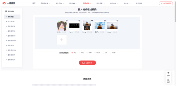 用它就可以对图片格式进行转换,在上面选择图片转换功能就行,也可以直接选择转换目标格式,都一样,打开功能后上传需要处理的图片文件即可,可以一次性添加多张图片;
