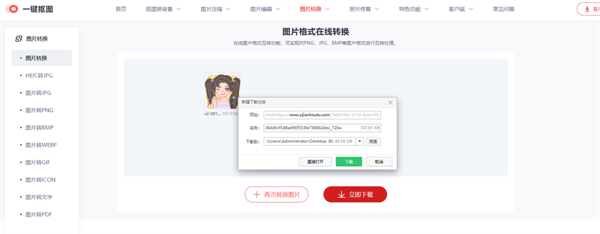 在下面就可以选择目标格式了,这里我就留下了第一张webp的选择了jpg格式,选择好之后直接点击[立即转换]就行,转换成功后就可以直接下载啦!很方便的哈!