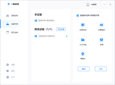 6.如果家里的电脑没有装一键远控,也可以通过网页端远程来传输文档。让同事帮忙打开公司电脑,将设备码发送你,粘贴到网页端,异地设备就能一键联动。