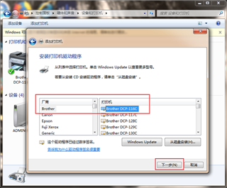 第三步:查看说明书或者打印机上面的【厂商和打印机型号】,在这个窗口里面选择好对应的品牌和打印机的型号,就可以继续下一步。