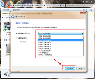 第二步:在这里需要选择打印机的端口,一般在打印机的机子上面会显示端口,或者在说明书上面也有说明,选择好对应的端口,就可以点击【下一步】。