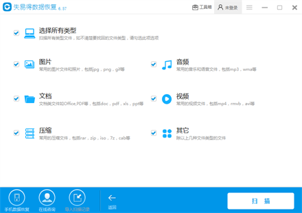 首先我们应该选择能够恢复各种种类数据的数据恢复软件,这样我们以后要是有其他设备数据误删、丢失或者格式化了,就可以直接恢复,不用重新去找方法恢复比较方便。