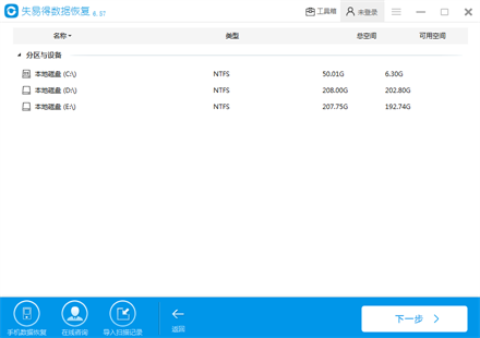 小编有遇到一款符合要求的数据恢复软件,它就是失易得数据恢复,能做到轻松恢复已经误删的各类存储卡中的各种数据,具备强大的磁盘扫描、磁盘诊断、数据恢复、存储卡文件恢复等功能。能够从电脑硬盘、U盘、内存卡、CF卡、SD卡、相机、记忆棒等多种介质中恢复由于误操作删除的,格式化丢失的多种文件类型的文件,并免费预览丢失的文件。