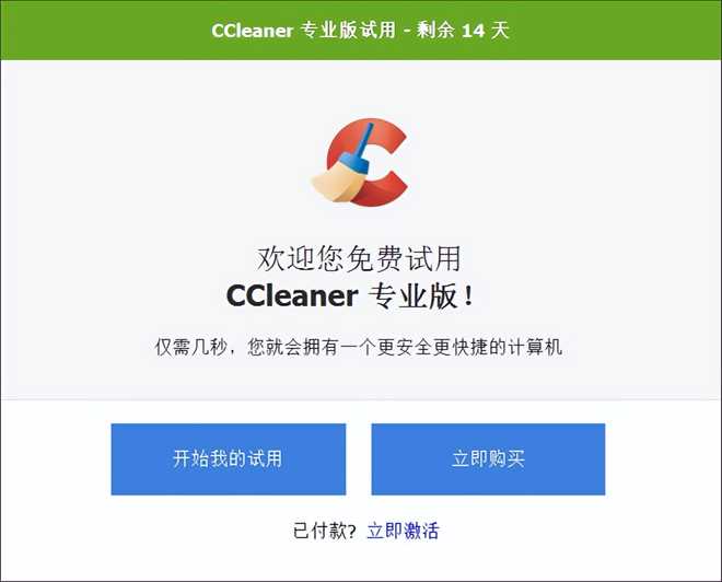 安装完成可以试用14天。点击开始我的试用。