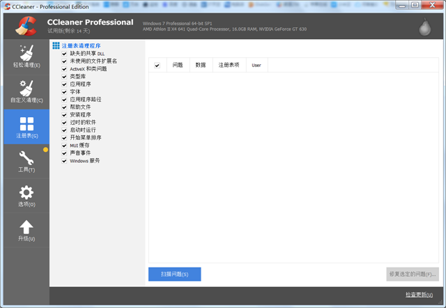 点击注册表,扫描问题。